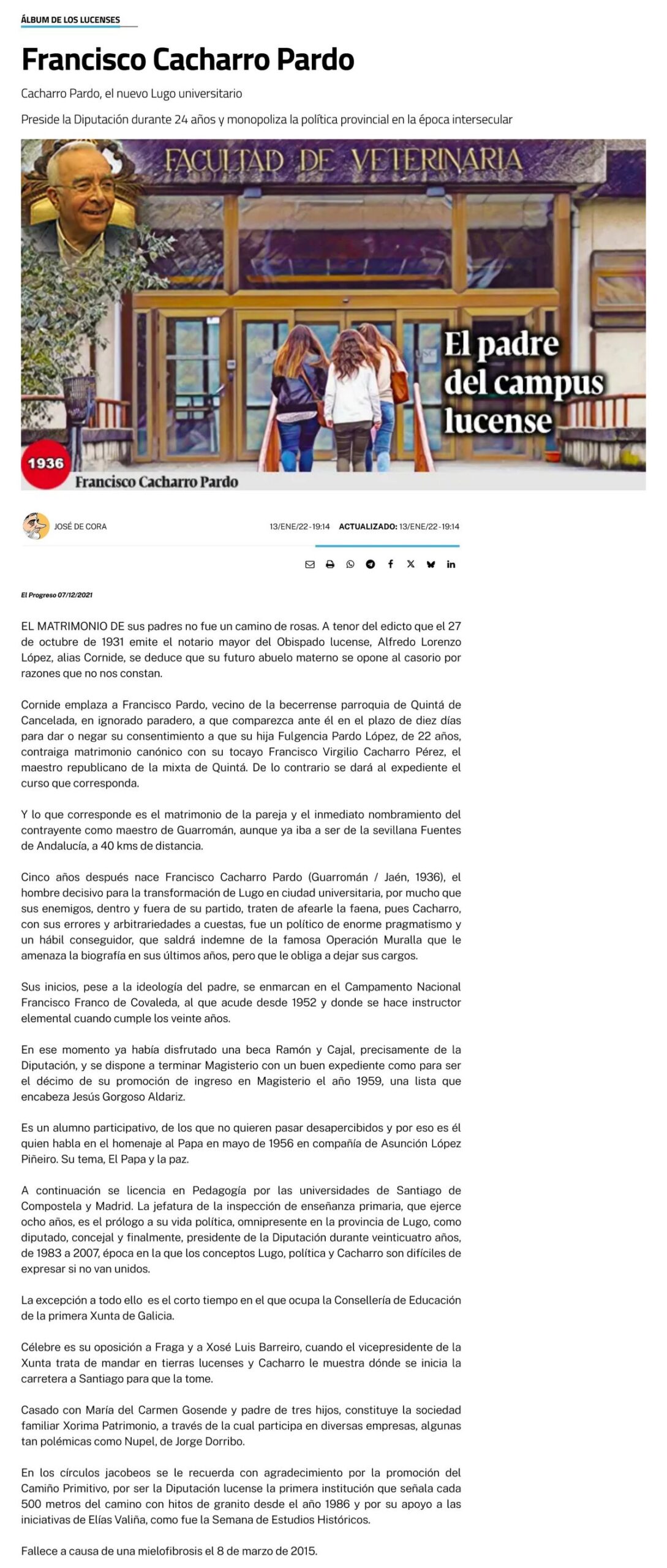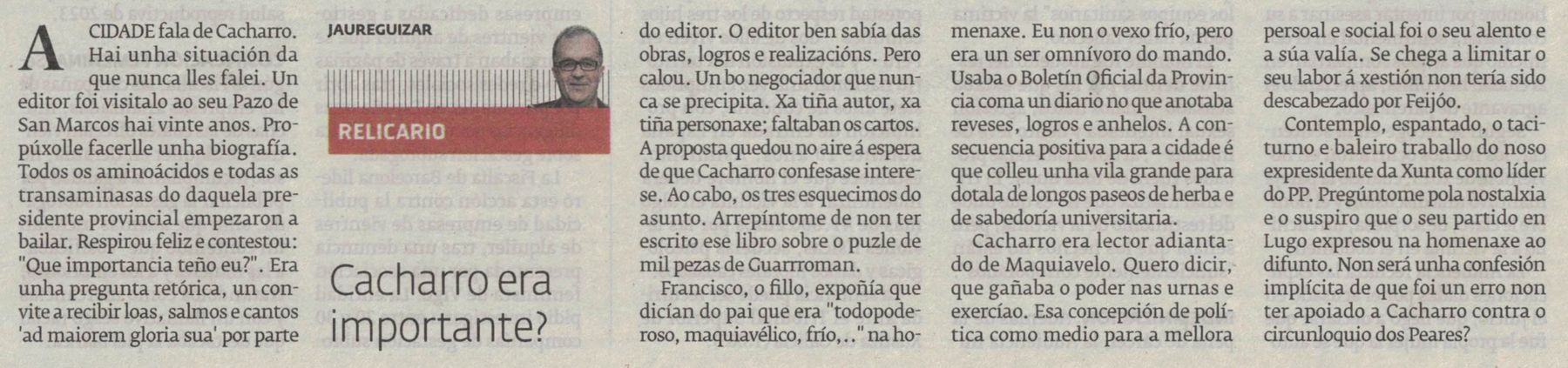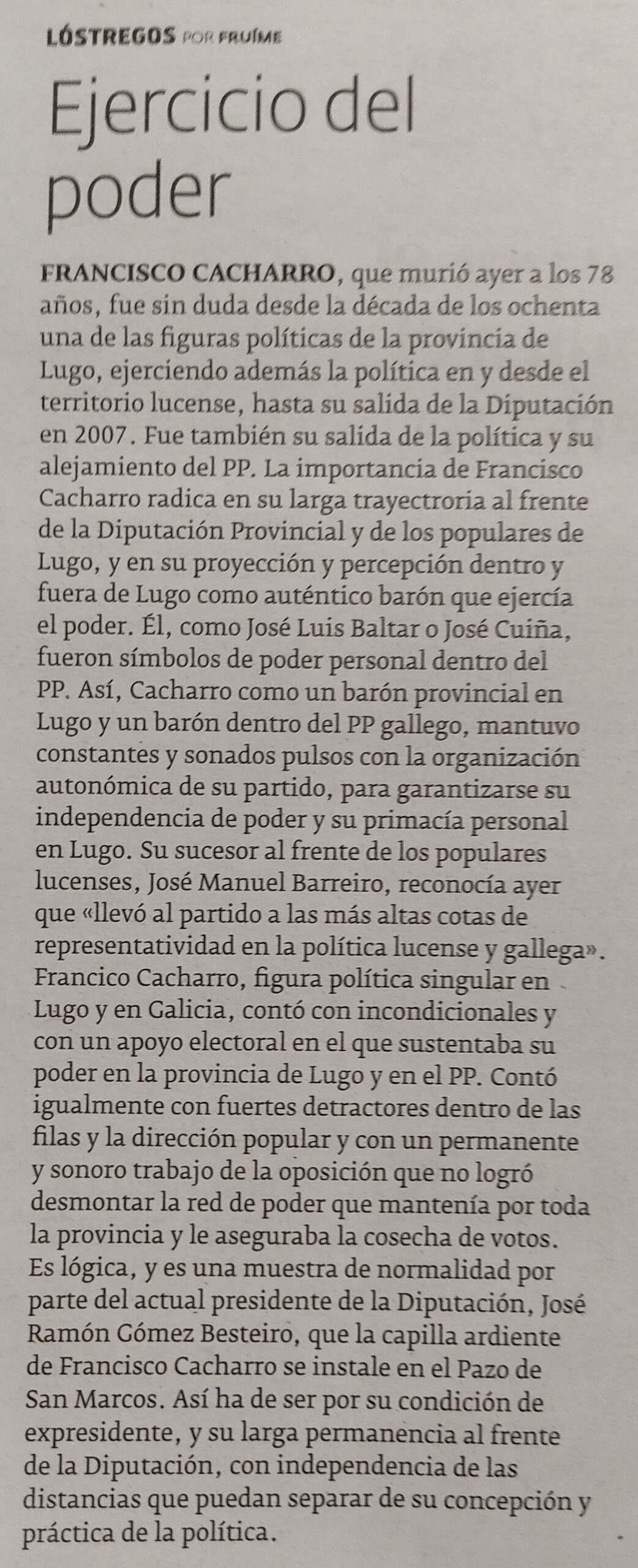 Diez años sin Cacharro Pardo, la forja del poder (El Progreso, 23/02/2025)
