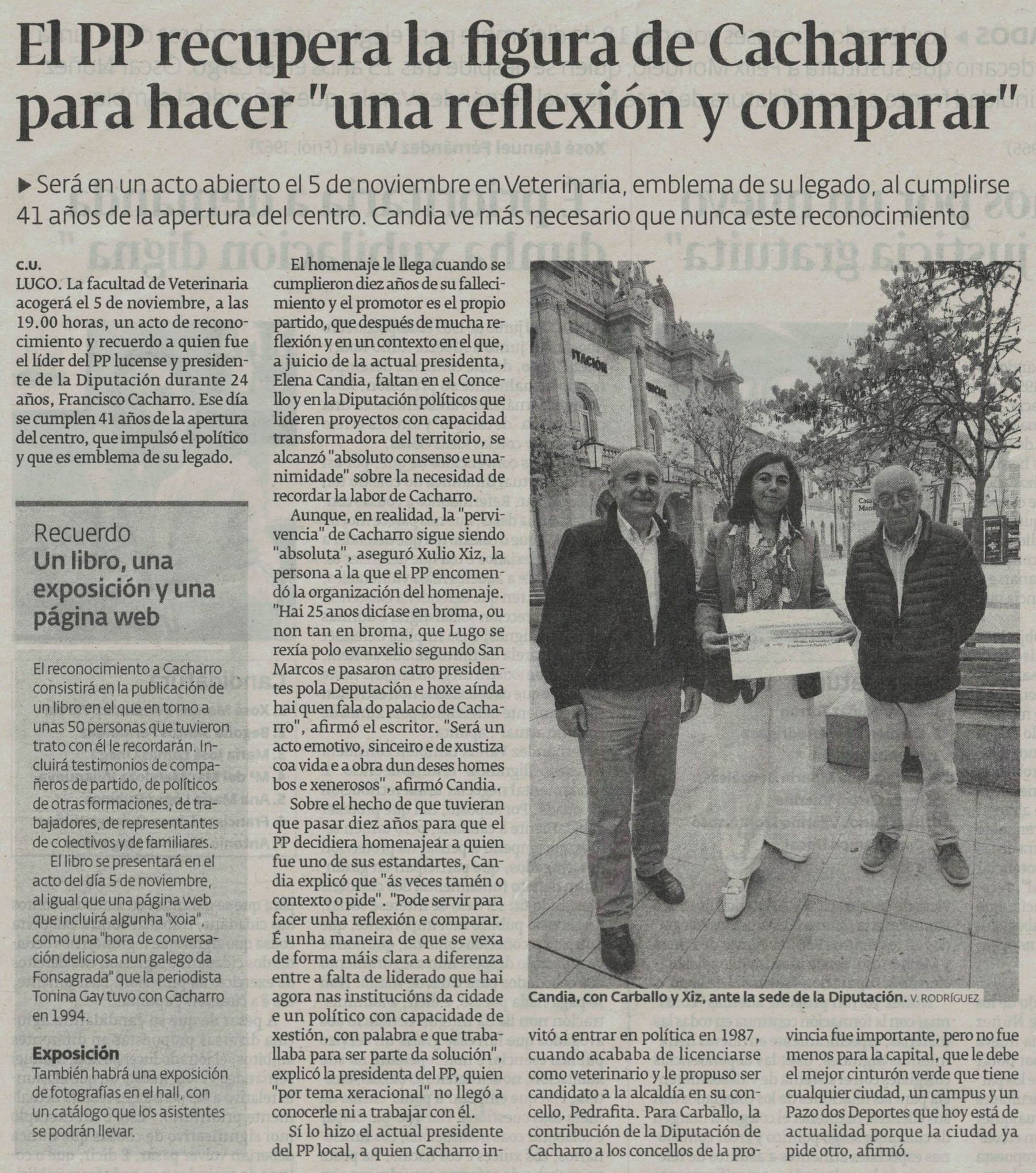 El PP rinde homenaje a Cacharro en el décimo aniversario de su muerte: “Era una deuda” (Diario de Santiago, 05/11/2025)