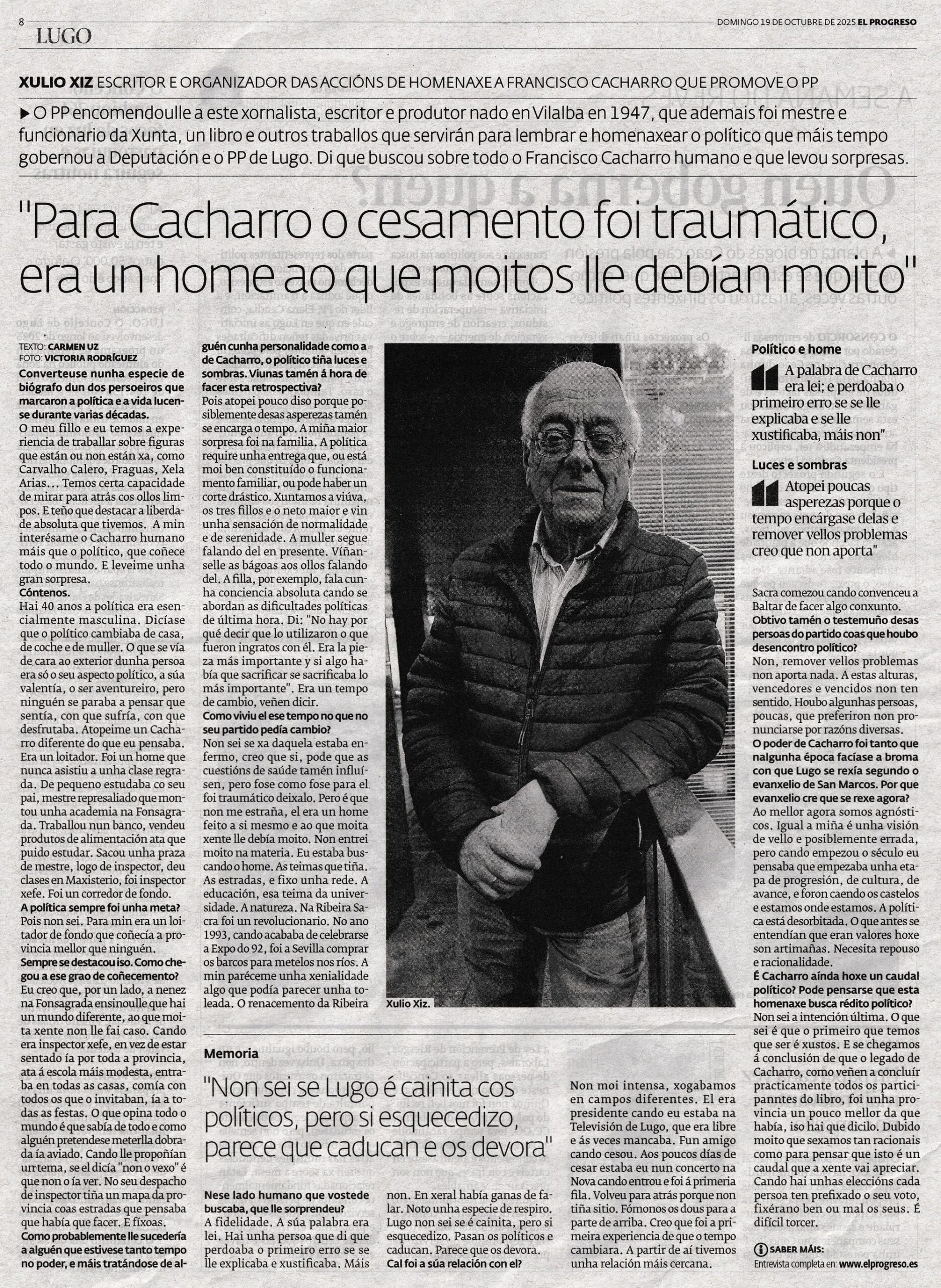 Xulio Xiz: “Para Cacharro o cesamento foi traumático, era un home feito a si e ao que moita xente lle debía moito” (El Progreso, 19/11/2025)