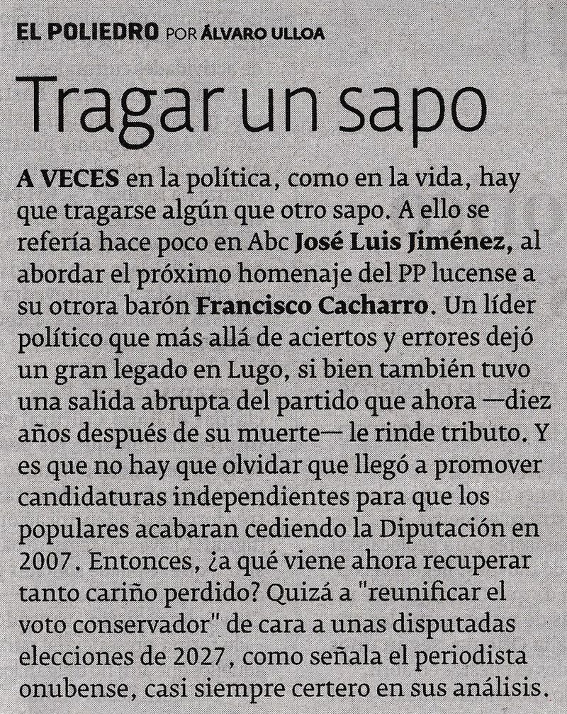 El PP cerró la herida de Cacharro Pardo (La Voz de Galicia, 05/11/2025)