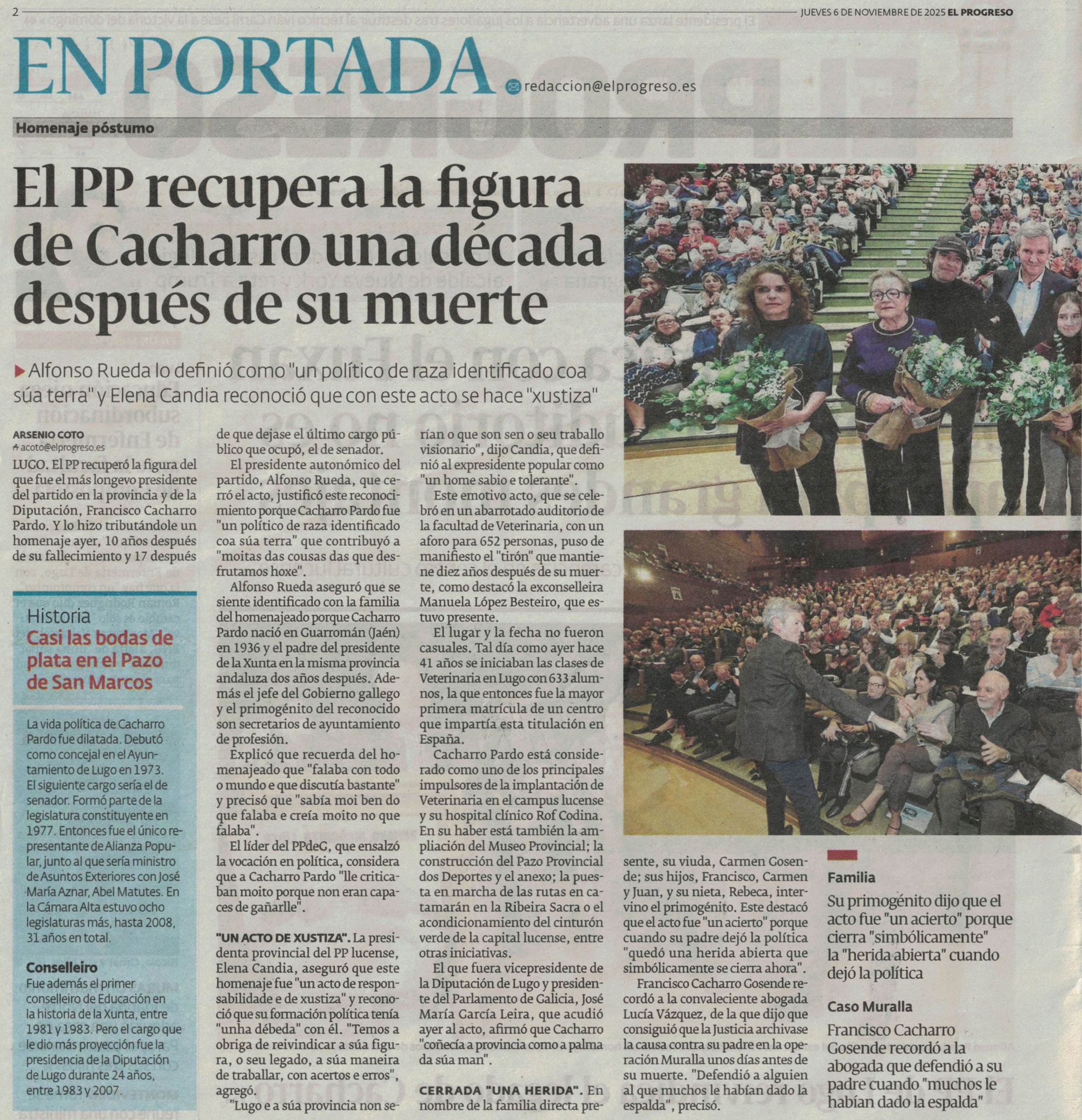 El PP recupera la figura de Cacharro Pardo una década después de su muerte (El Progreso, 05/11/2025)